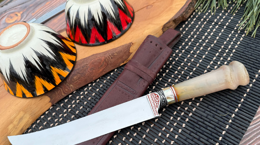 Нож на всю жизнь: пчак из стали Кромакс с роговой рукоятью и ручными ножнами