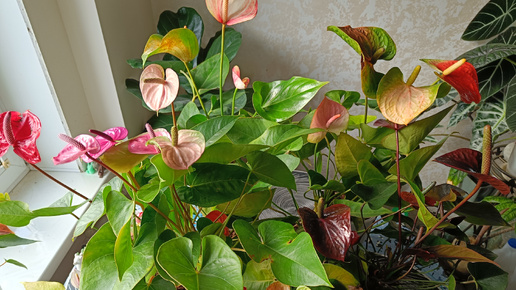 Антуриумы. Много цветов