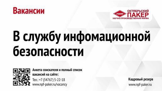 Далее: Вакансия руководитель ОТИЗ г. Октябрьский НПФ Пакер