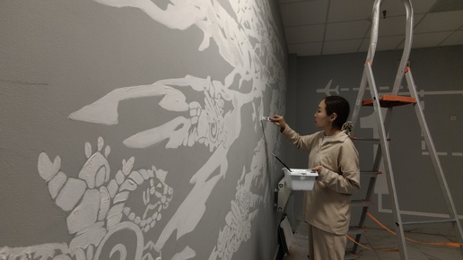 Мира Аргунова рисует картину к столетию якутской авиации