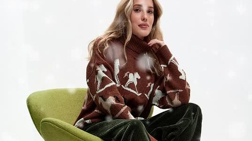 Свитер новогодний ❄️ с принтом "Лошади"(коричневый) https://clck.ru/3QmLYb и Брюки из вельветовые (темно зеленые) https://clck.ru/3QmM4Y