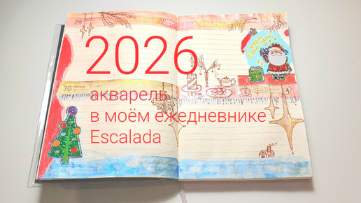 Пробую акварель в моём ежедневнике Escalada | Новогоднее оформление и разворот блокнота