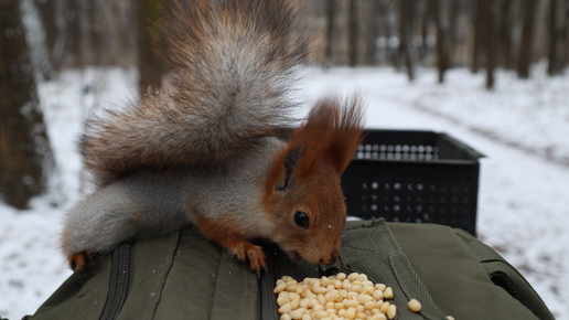 Парк. Снег. Белки. Зарисовка