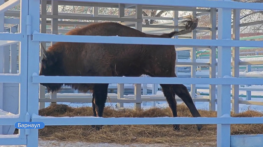 В барнаульском зоопарке удалось запечатлеть на видео «потягушки» зубра