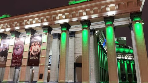 Освещение зданий: архитектурная подсветка театра прожекторами