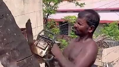 Техника безопасности его боится😨Спиленное дерево пролетело в миллиметре от головы😨