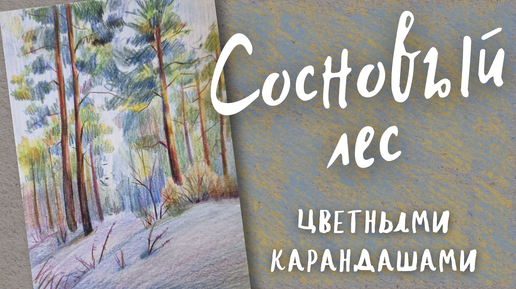 Нарисуем зимний пейзаж "Сосновый лес" цветными карандашами
