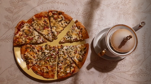 Пицца домашняя, аппетитная. Тесто из хлебопечки, выпекаю в духовке.
