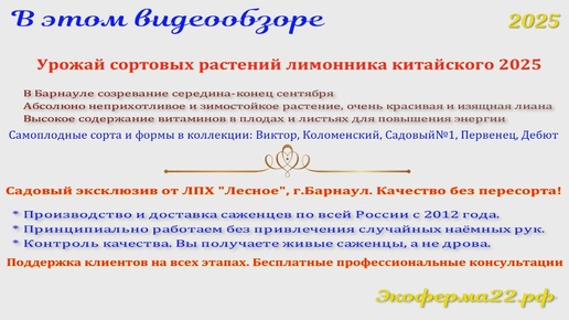 Лимонник китайский сортовой. Урожай.