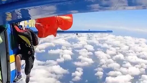 Парашютист зацепился за хвост самолета и повис над бездной.