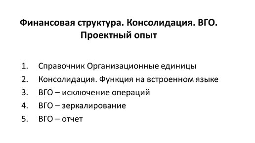 Этап 3. Финансовая структура. (Часть 2). Проектный опыт. Консолидация. ВГО