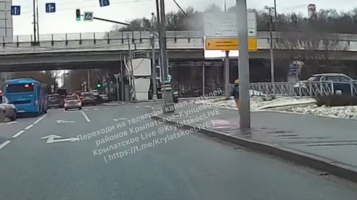 Очередной курьер летит посередине дороги на красный свет на пересечении дублера Рублевки и Осеннего бульвара в Крылатском