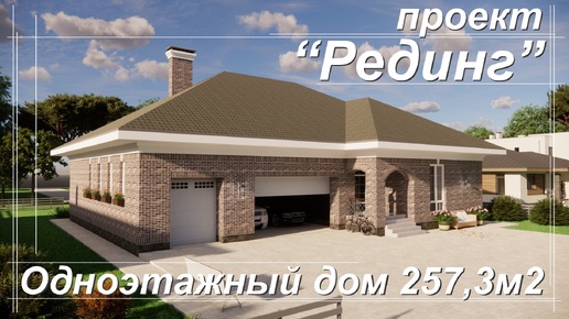 Проект Рединг. Одноэтажный дом 257,3м2. Огромная гостиная и 3 спальни Гараж и мастерская.