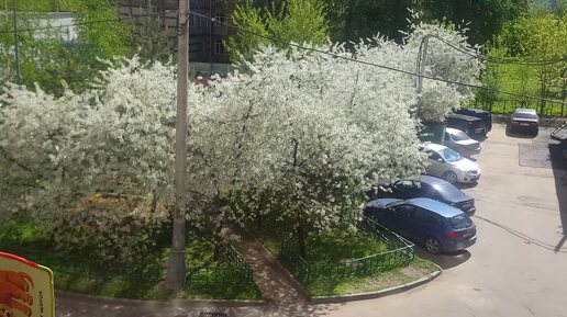 Цветение вишнёвого сада в нашем дворе (9 мая 2018 года).