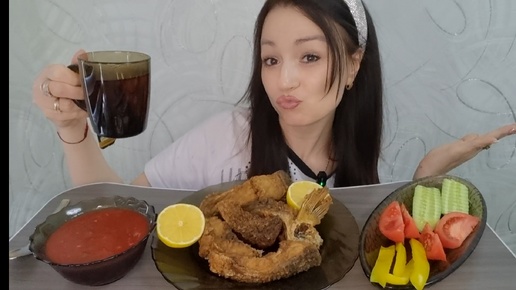 Сазан Жареный_Соус_Овощи🤪#mukbang#kristinakiss#food#