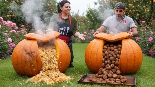 This Food Is Trending on Social Media! Pilaf and Meatballs in a Pumpkin