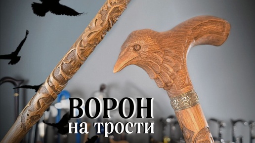 Резная трость из дуба с головой ворона | Удобная опора и стильный аксессуар
