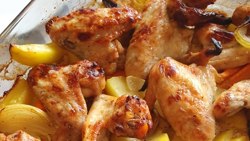 Приготовила обед-крылья запечённые с овощами / запечённая свинина целым куском с чесноком