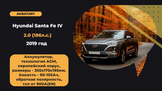 Hyundai Santa Fe 2019 год замена аккумулятора | Аккумулятор EFB вместо AGM на Хендай Санта Фе 2019 года