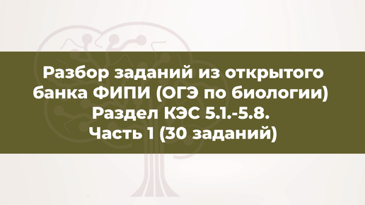 Разбор заданий из открытого банка ФИПИ (ОГЭ по биологии). Раздел КЭС 5.1.-5.8. Часть 1 (30 заданий)