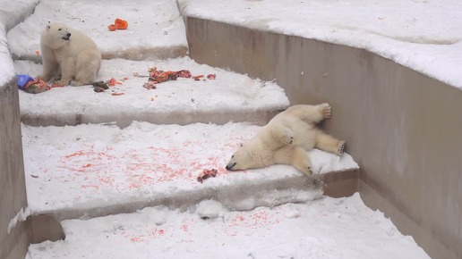 Белка и Стрелка едят вкусняшки и играют с канистрами. 13.12.2025