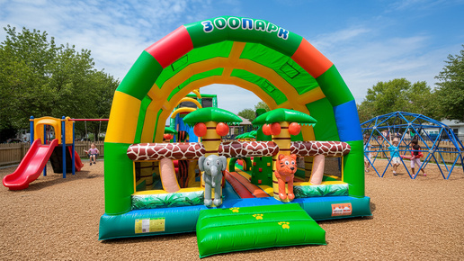 Коммерческий надувной батут «Зоопарк» с крышей, 15*7*9 м.