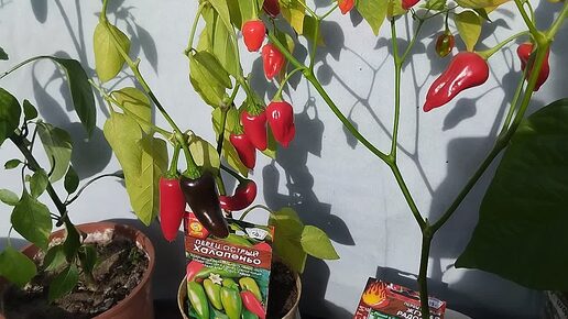 Разноцветные сорта острого перца в цветочных горшках. Легко и просто вырастить.