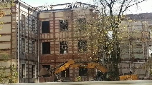 Снос здания бывшего железнодорожного колледжа на Талдомской улице, дом 5 (октябрь 2023 года).