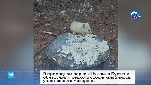 В природном парке «Шумак» в Бурятии обнаружили редкого соболя-альбиноса, уплетающего макароны