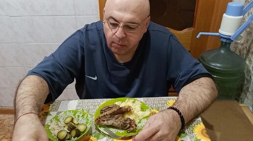 Мукбанг. Утка тушёная с пюре и маринованные огурцы. Подземный житель.