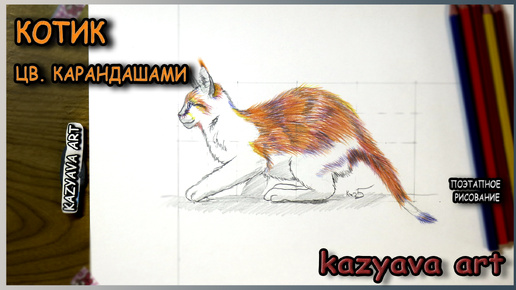 Как нарисовать КОТЕНКА детскими цветными карандашами. Рисование шерсти. Поэтапно