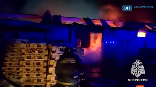 Появились кадры пожара на пилораме в Гусь-Хрустальном
