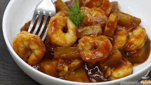 Нежные морепродукты в кисловато-сладкой шубке. Креветки в ананасовом соусе