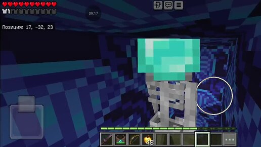 Волки гоняются за скелетом в лабиринте в Майнкрафте.