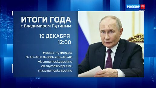 До «Итогов года с Владимиром Путиным» осталось чуть больше суток