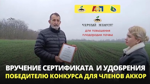 Вручение сертификата и призового удобрения ЧЖ Гумус победителю конкурса, проводимого чреди членов АККОР 2025 г.