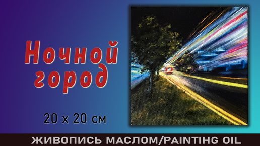 Ночной город, пейзаж масляными красками. 20х20 см