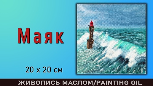«Маяк» морской пейзаж масляными красками. 20х20 см