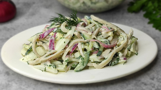 Простой И вкусный салат с КАЛЬМАРАМИ. Салат ИЗ 4-х ИНГРЕДИЕНТОВ!