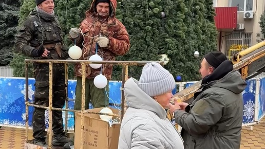 В Красном Сулине решили доукрасить ёлку в центре города. Она выглядела немного облезлой.