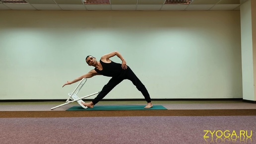 Поза Треугольника (Триконасана) на стуле Айенгара / Triangle Pose (Trikonasa) with Iyengar Chair