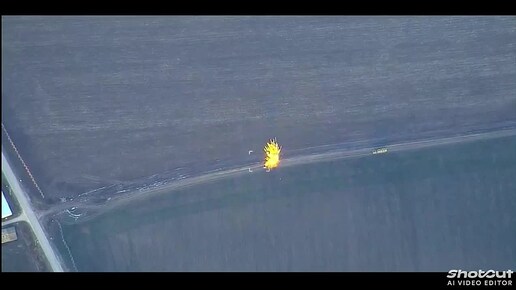 Удар украинских дронов-камикадзе по двум пусковым установкам ЗРК С-400, подловленным на марше.