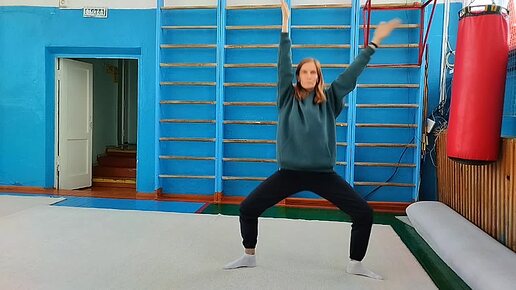 Приседания со сложной работой рук. Качаем ноги и мозг