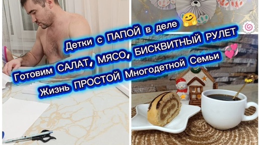 Детки с ПАПОЙ в деле / Готовим САЛАТ, МЯСО, БИСКВИТНЫЙ РУЛЕТ / Жизнь ПРОСТОЙ Многодетной Семьи