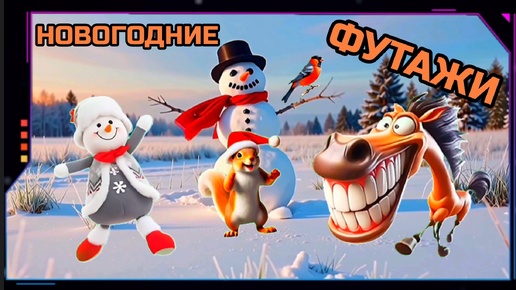 СНЕГОВИК, ЛОШАДЬ, БЕЛКА, СНЕГИРЬ видео на зелёном экране. Хромакей футаж анимация GREEN SCREEN.