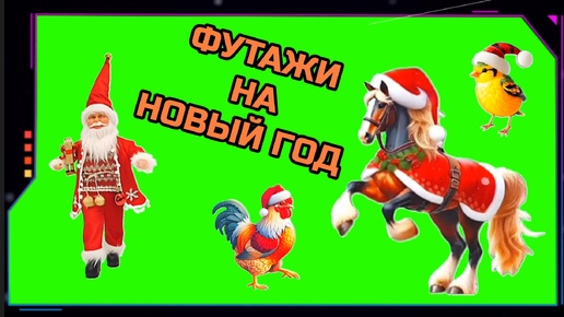 ЛОШАДКА, ДЕД МОРОЗ, ПЕТУХ, ПТИЧКА на зелёном экране. Хромакей футажи, анимация GREEN SCREEN.