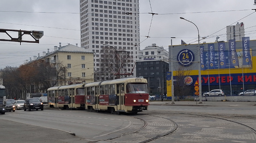 Поездка на трамвае Tatra T3SU, номер 141+142, маршрут 8