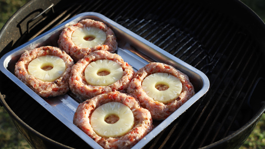 Горячее с курицей и ананасами на угольном гриле