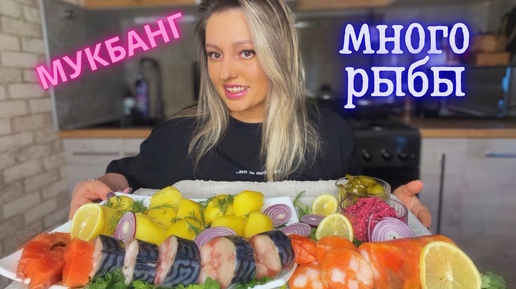 МУКБАНГ /СКУМБРИЯ НЕРКА И РУЛЕТ ИЗ СЁМГИ И КРЕВЕТОК🐠🥰