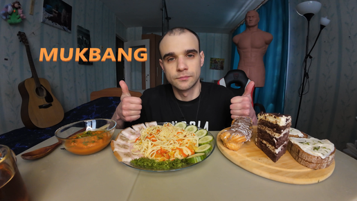 МУКБАНГ МЯСО - ГРУДИНКА СВИНАЯ / СПАГЕТТИ / ИКРА КАБАЧКОВАЯ / БУТЕРБРОДЫ / ТОРТ ШОКОЛАДНЫЙ ТВОРОЖНО - СЛИВОЧНЫМ КРЕМОМ И ЭКЛЕР / ЕДА / АСМР